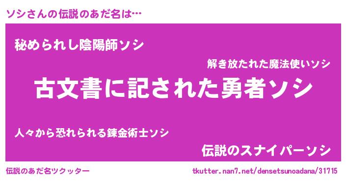 | ファンタジー風あだ名 | 『ゼソシトゥ』『ソシディッシュ』 |