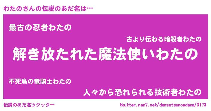 | ヒーロー風カッコイイあだ名 | 『幻影騎士ワタ』『ウルトラわたのマン』 |