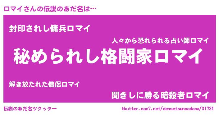 | ポケモン風あだ名 | 『ローマイ』『ロマキング』 |