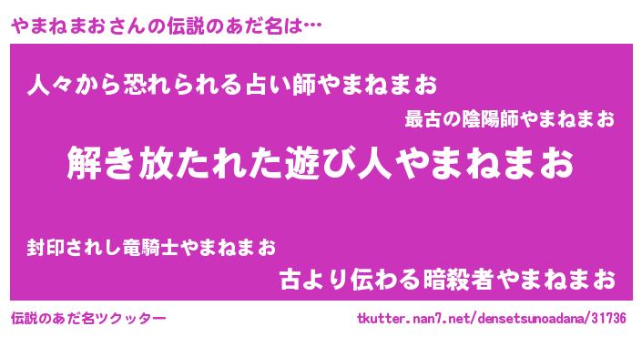 | ヒーロー風カッコイイあだ名 | 『銀牙騎士ヤマ』『正義の使者やまねまお』 |