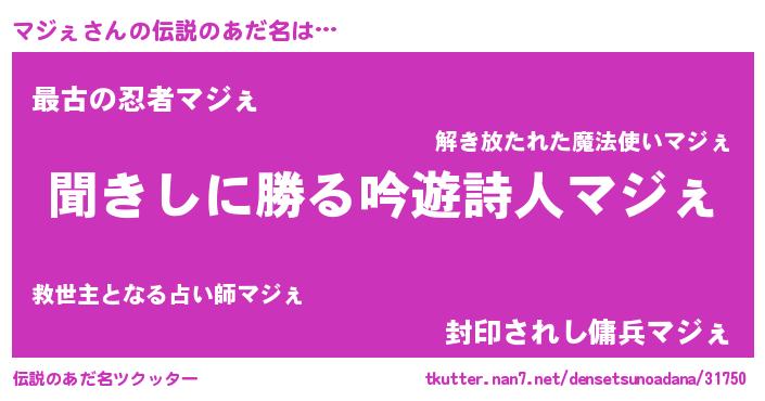 | 意味不明あだ名 | 『自称マジぇ』『永久保存マジぇ』 |