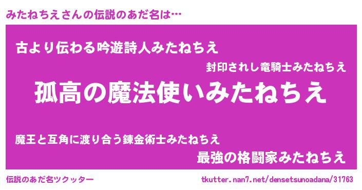 | 意味不明あだ名 | 『とにかく怪しいみたねちえ』 |