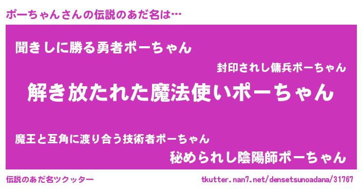 | ヒーロー風カッコイイあだ名 | 『幻影騎士ポー』『ネオポーチャン』 |