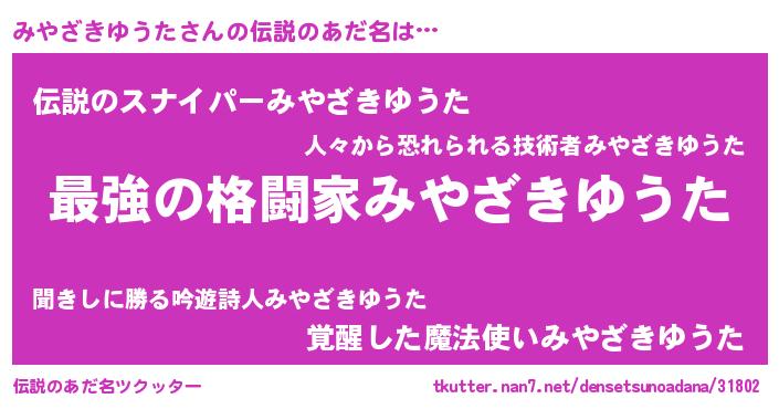 | 意味不明あだ名 | 『住所不定無職みやざきゆうた(5歳)』 |