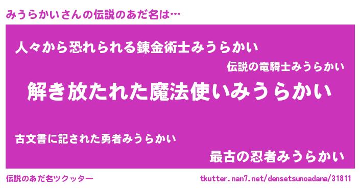 | 意味不明あだ名 | 『自称みうらかい』 |