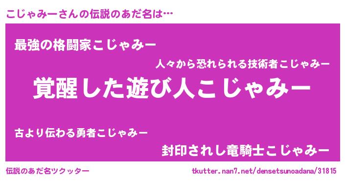 | ヒーロー風カッコイイあだ名 | 『究極戦士コジャミー』『炎刃騎士コジ』 |