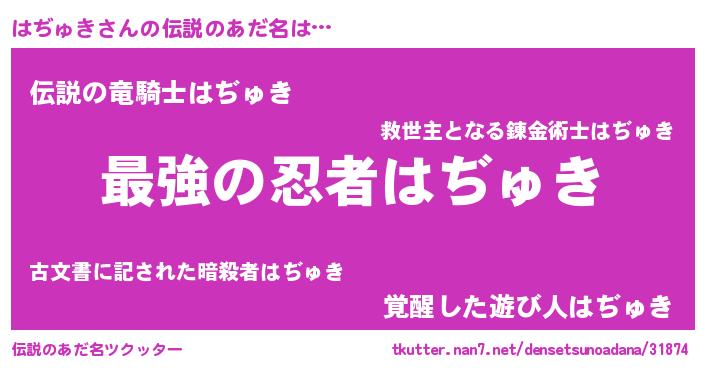 | ヒーロー風カッコイイあだ名 | 『ウルトラはぢゅきマン』『天弓騎士ハヂ』 |