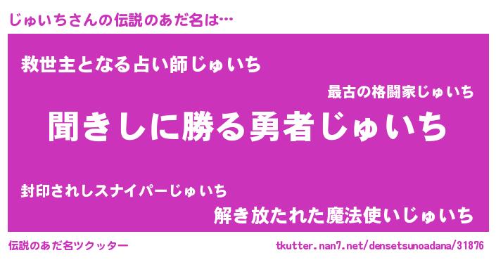 | ヘコむあだ名 | 『じゅいち(苦笑)』『じゅっちょ』 |