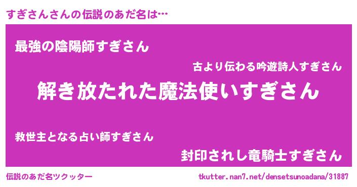 | 意味不明あだ名 | 『住所不定無職すぎさん(9歳)』 |
