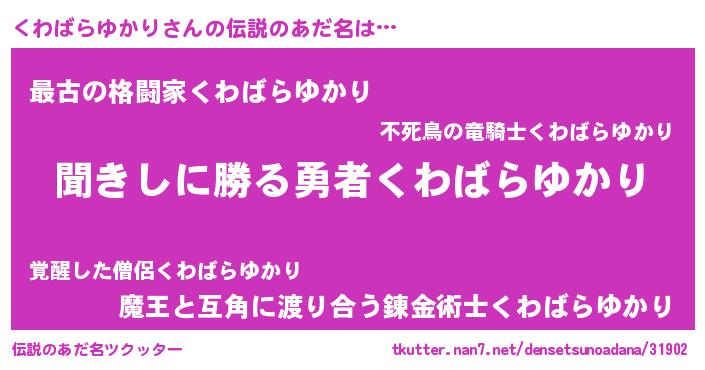 | ヒーロー風カッコイイあだ名 | 『ネオクワバラユカリ』 |
