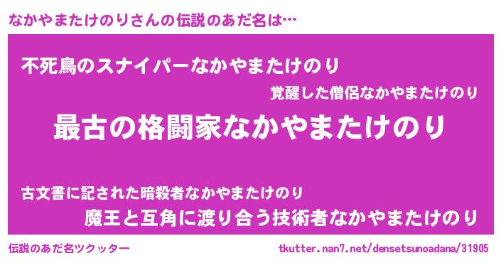 | 意味不明あだ名 | 『なかやまたけのりフォーエバー』 |