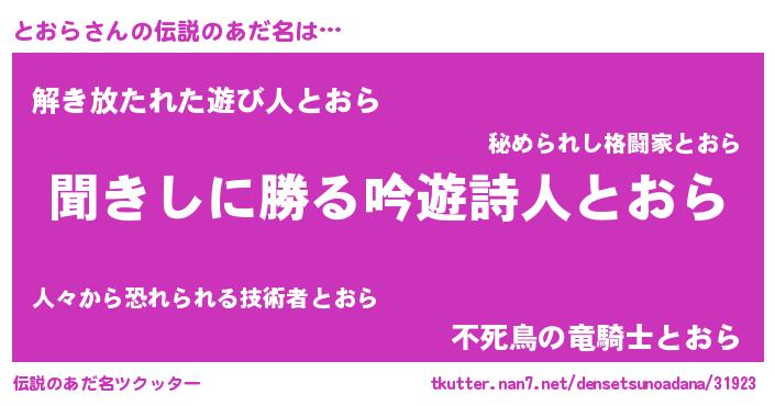 | ヒーロー風カッコイイあだ名 | 『ネオトオラ』『仮面トオダー』 |