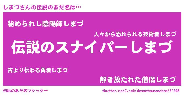 | 意味不明あだ名 | 『住所不定無職しまづ(91歳)』『自称しまづ』 |
