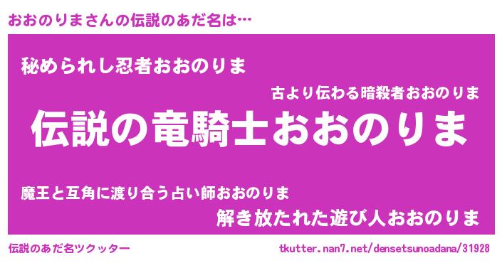 | ファンタジー風あだ名 | 『オオフェル』『エターナルオオノリマー』 |