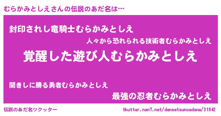 | 意味不明あだ名 | 『とにかく怪しいむらかみとしえ』 |