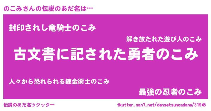 | ヒーロー風カッコイイあだ名 | 『ネオノコミ』『スーパーノコミ』 |