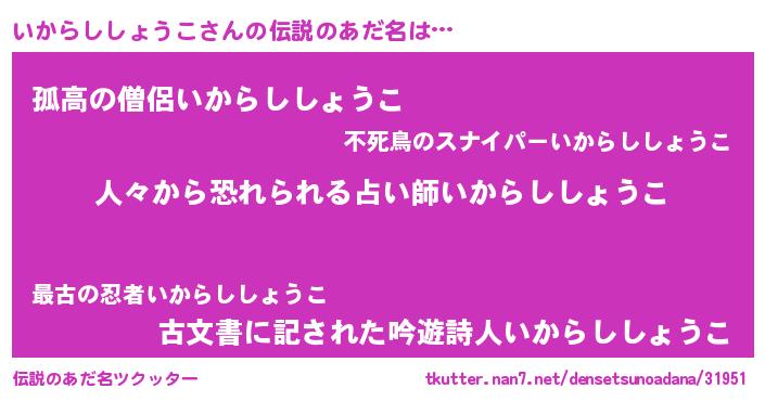 | 意味不明あだ名 | 『住所不定無職いからししょうこ(68歳)』 |