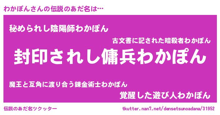 | ヒーロー風カッコイイあだ名 | 『スーパーワカポン』『暗黒騎士ワカ』 |