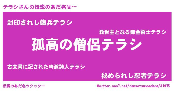 | ヒーロー風カッコイイあだ名 | 『暗黒騎士テラ』『究極戦士テラシ』 |