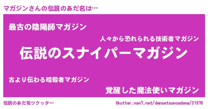 | 胡散臭い通販商品みたいなあだ名 | 『必ず成功する霊験あらたかなお札…その名も「マガジン」』 |