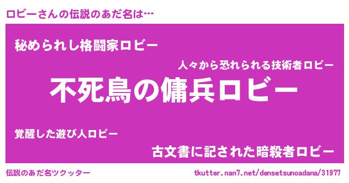 | ヒーロー風カッコイイあだ名 | 『ウルトラ戦士ロビー』『スーパーロビー』 |