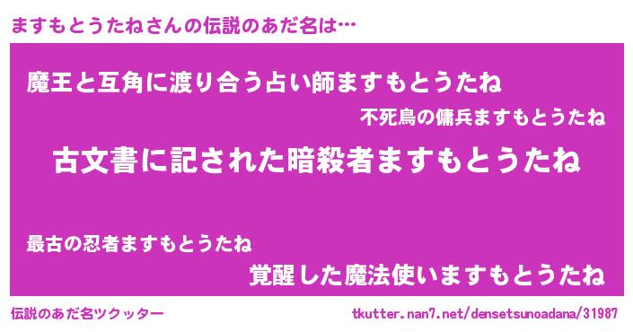 | 欧米人風あだ名 | 『アンジェラ・ますもとうたね』 |