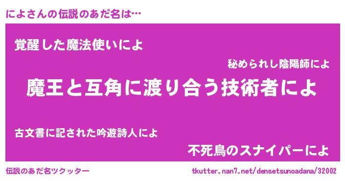 | ヒーロー風カッコイイあだ名 | 『仮面ニヨダー』『慈愛の使者によ』 |