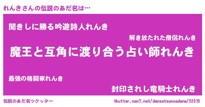 | ヘコむあだ名 | 『れんき(爆)』『れんにー』『れんお』 |