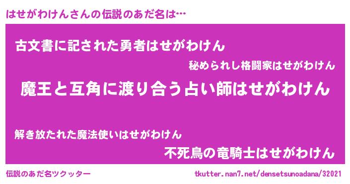 | ヒーロー風カッコイイあだ名 | 『慈愛の使者はせがわけん』 |
