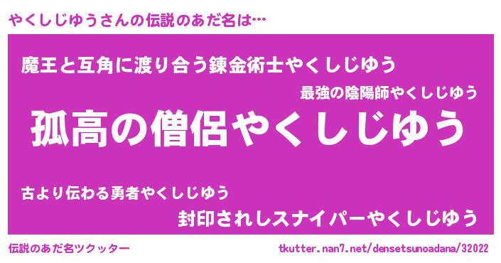 | 意味不明あだ名 | 『とにかく怪しいやくしじゆう』 |