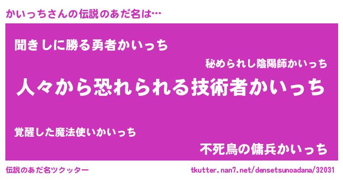 | ヒーロー風カッコイイあだ名 | 『友情の使者かいっち』『仮面カイダー』 |