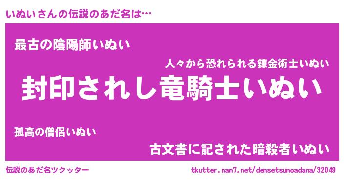 | 意味不明あだ名 | 『自称いぬい』『ペロリンいぬい』 |