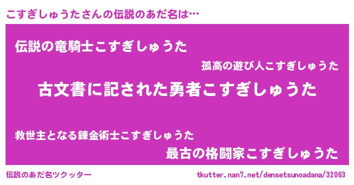 | 意味不明あだ名 | 『永久保存こすぎしゅうた』 |