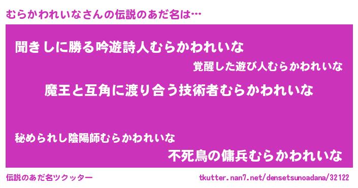 | 意味不明あだ名 | 『自称むらかわれいな』 |