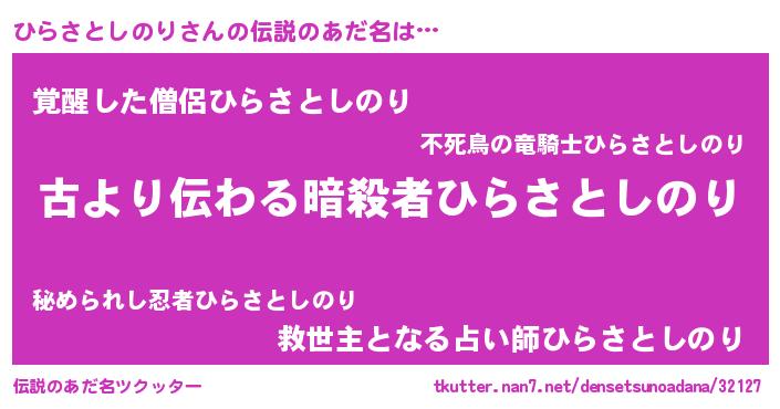 | ヒーロー風カッコイイあだ名 | 『ネオヒラサトシノリ』『幻影騎士ヒラ』 |