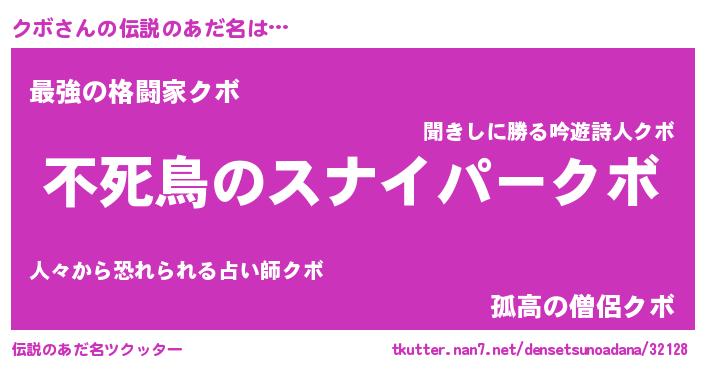 | ヒーロー風カッコイイあだ名 | 『スーパークボ』『ウルトラクボマン』 |