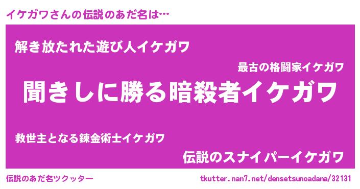 | 意味不明あだ名 | 『永久保存イケガワ』『自称イケガワ』 |