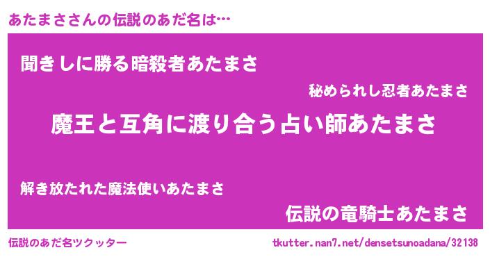 | ヒーロー風カッコイイあだ名 | 『サイバー戦士アタマサ』『ネオアタマサ』 |