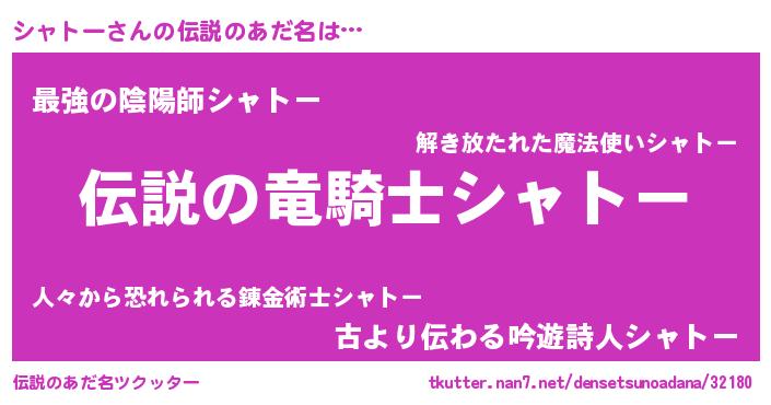 | ヒーロー風カッコイイあだ名 | 『スーパーシャトー』『仮面シャダー』 |