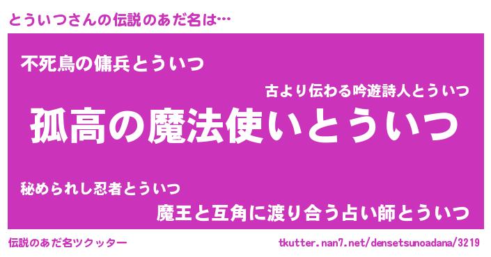 | ヒーロー風カッコイイあだ名 | 『超時空戦士トウイツ』『幻影騎士トウ』 |