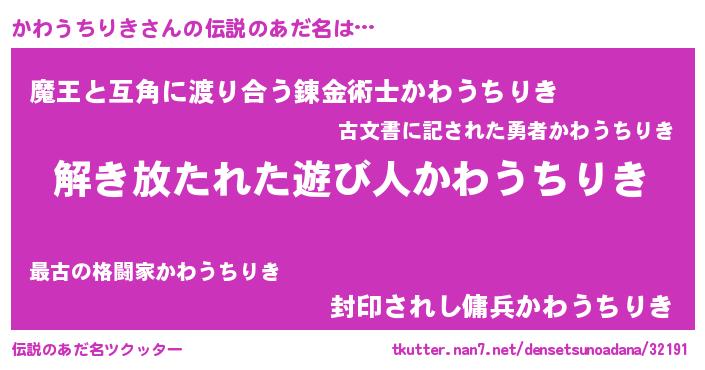 | ヒーロー風カッコイイあだ名 | 『サイバー戦士カワウチリキ』 |