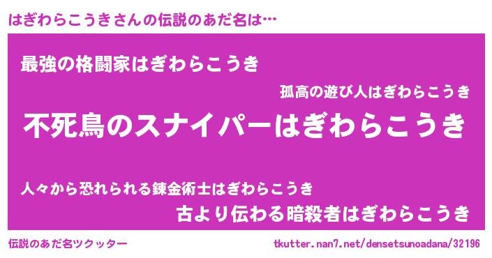 | 欧米人風あだ名 | 『はぎわらこうき・ステッグマイヤー』 |