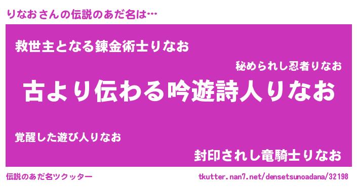 | ファンタジー風あだ名 | 『リナディッシュ』『カークリナラー』 |