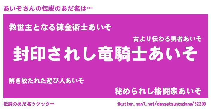 | ヒーロー風カッコイイあだ名 | 『スーパーアイソ』『友情の使者あいそ』 |