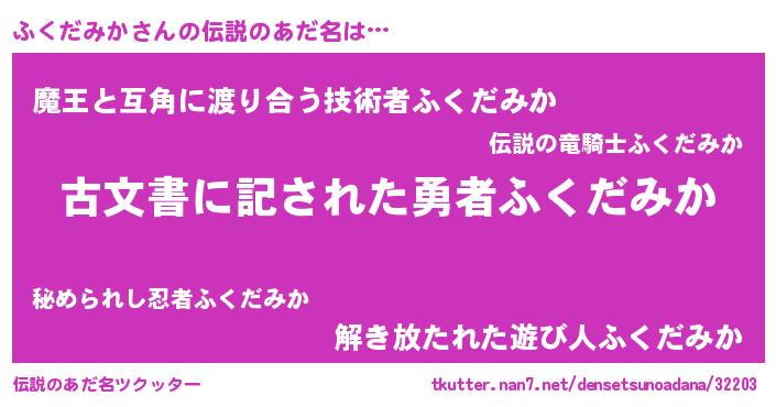 | ヒーロー風カッコイイあだ名 | 『ネオフクダミカ』『愛の使者ふくだみか』 |