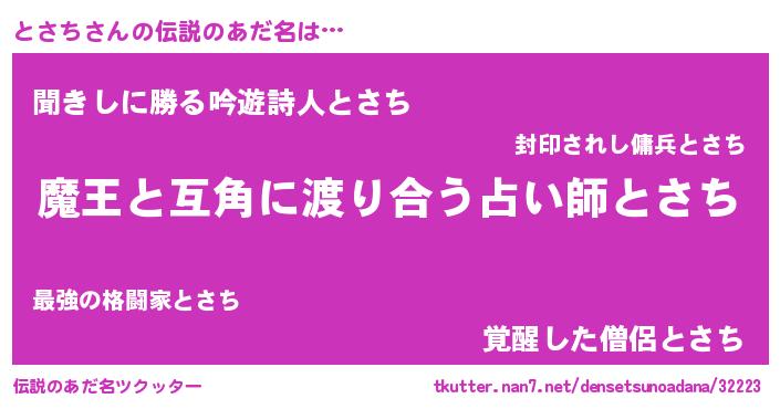 | 男性向けラノベタイトル風あだ名 | 『とさちに滅ぼされるだけの簡単なお仕事です』 |