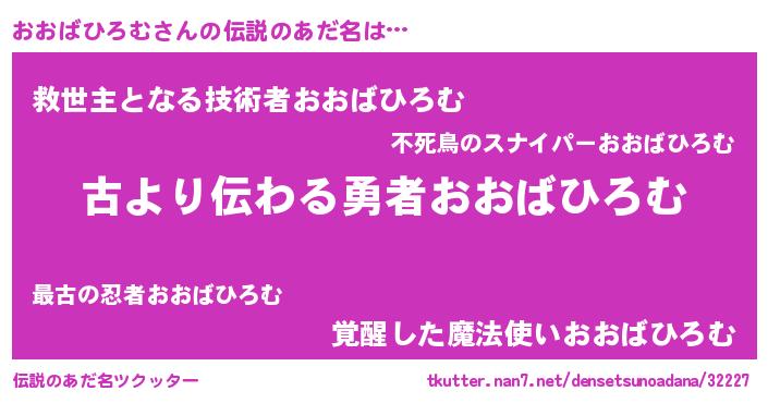 | 意味不明あだ名 | 『自称おおばひろむ』 |