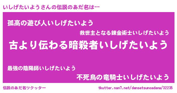 | 意味不明あだ名 | 『自称いしげたいよう』 |
