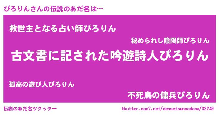 | 男性向けラノベタイトル風あだ名 | 『ぴろりんに滅ぼされるだけの簡単なお仕事です』 |