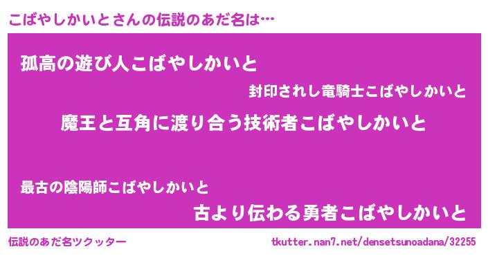 | 女子向けラノベタイトル風あだ名 | 『こばやしかいと恋絵巻』 |